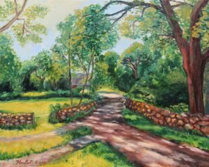 Puulaid, Nasva küla, Hiiumaal, õli lõuendil, 50x75cm, 2016