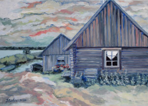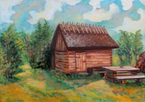 Puulaid, Nasva küla, Hiiumaal 2, õli lõuendil, 50x75cm, 2017